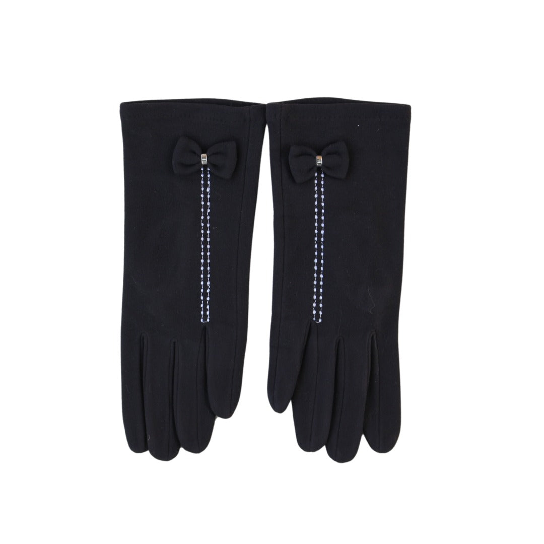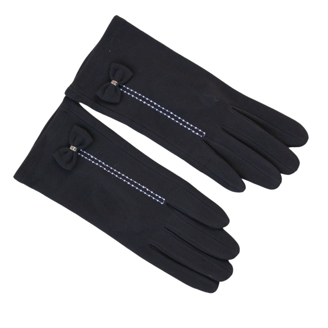 Girls black bow gloves