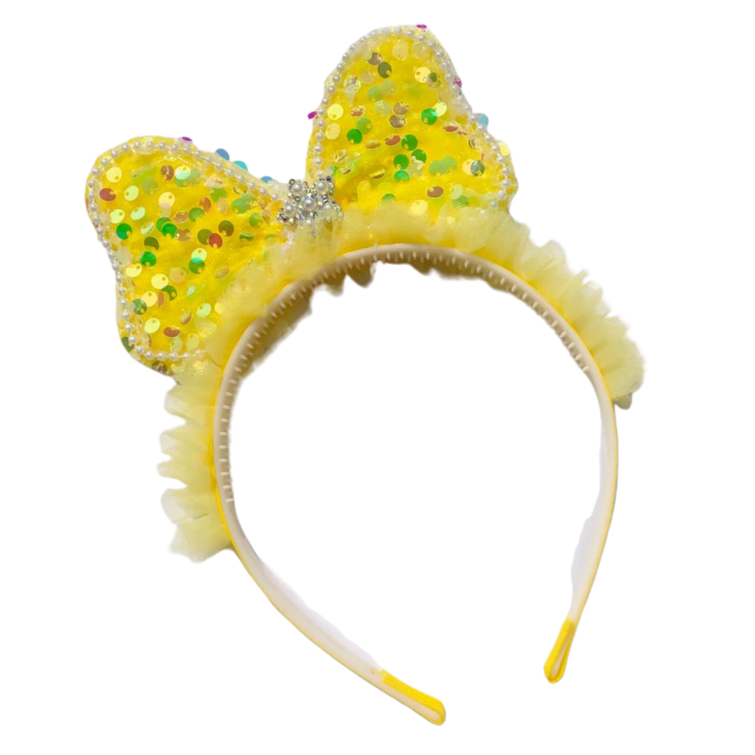 Girls yellow bow sequin hair band